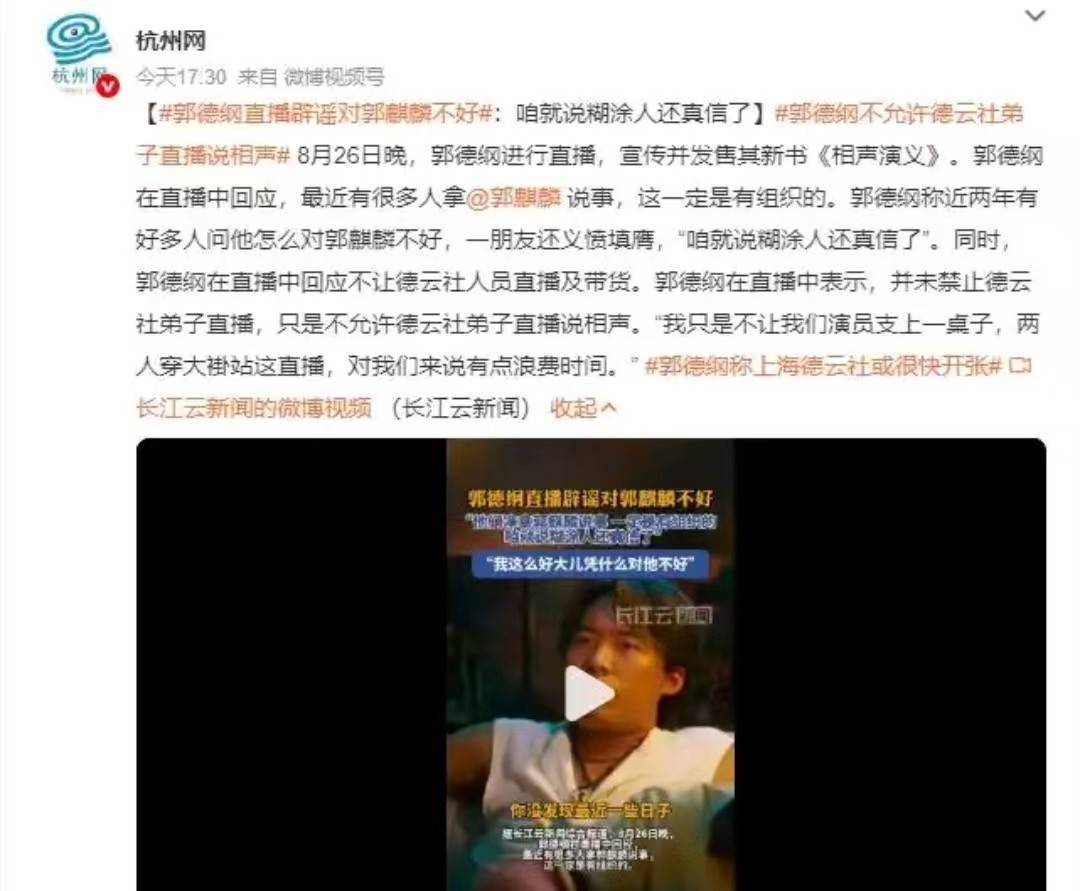 郭德纲在近期的直播中,终于回应了这一话题。